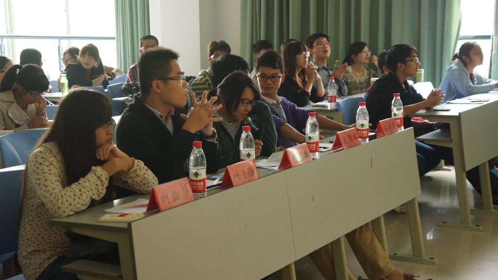 第一轮过后,中场休息时安插了与观众互动的环节,使得原本紧张激烈的气氛松弛下来。轻松愉快的互动之后,迎来了第二轮时事热点辩论。八名选手分别对四个辩题展开辩论,其中包括转基因食品是天使还是魔鬼、上海能否超越香港取得国际金融中心地位等热点问题。在激烈的辩论中,选手们条理清晰、思维严谨的发言,使比赛的气氛几度掀到高潮。在几番角逐之后,冠亚季军的得主终于水落石出。他们是蔡金梦同学,欧阳艳华同学和张喨同学。与此同时,胡梦蝶同学也获得了本次比赛的风采奖。最后,孔繁鹏学长对此次比赛作了总结。