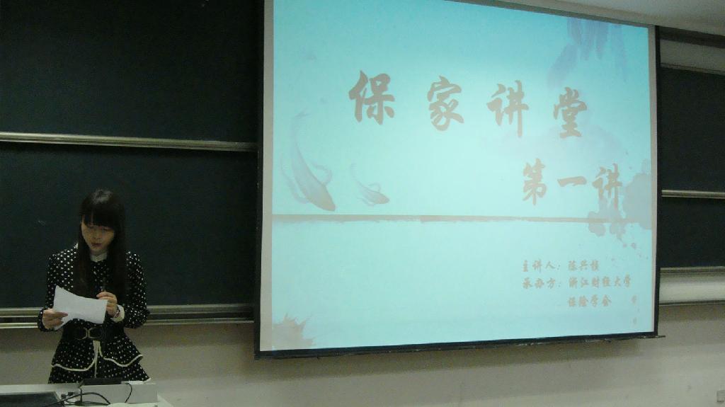 讲座一开始,由叶晓凌老师代表讲话,并对陈兴桢经理进行了介绍。随后,陈兴侦经理从六个方面讲述了他的经验体会。首先,陈经理就明确提出保险是对安全的保障。人生的规划存在潜在风险,而保险公司能够出面承担这类风险,因此保险行业发展潜力巨大。但与此同时,机遇与挑战并存。陈经理又指出我国保险发展还处于初级阶段,与先进发达国家相比差距甚远,我国的保险行业的发展依旧任重道远。陈经理鼓励同学们认真学好专业知识,为保险业的发展贡献出自己的一份力量。在之后的自由提问环节中,同学们积极提问,陈经理也一一作出了详细的解答,现场气氛热闹非凡。