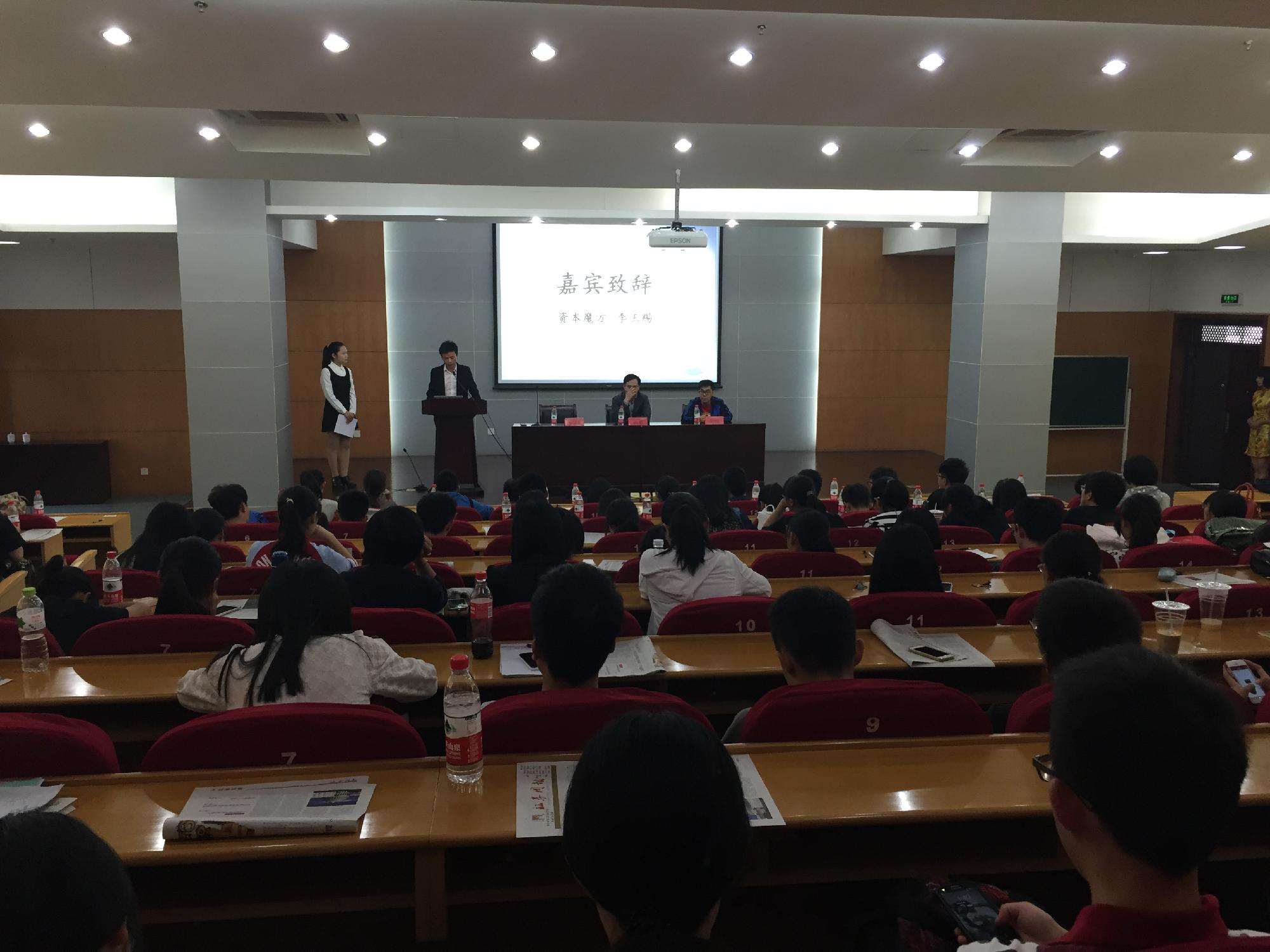 2014年10月28日下午1:30,由金融学会主办的第九届模拟证券投资竞赛开幕式在行政楼二楼报告厅举行。出席此次开幕式的嘉宾有金融学会指导老师武鑫老师、资本魔方副总监李王赐先生、专业炒股人士金锐先生以及各参赛公司代表。