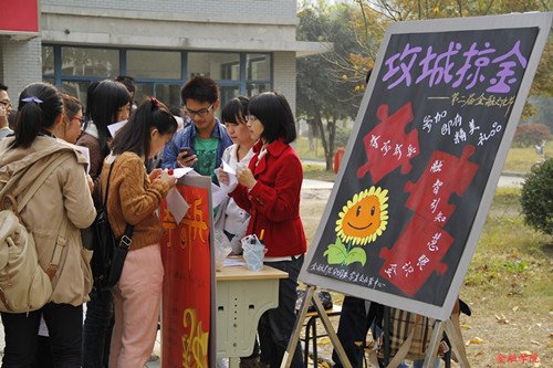 本次金融文化节由“金融飓风”“攻城掠金”“金融在线”三部分构成,汇集七大社团的力量,为同学们带来了一场游园盛会。选手们在前期“金融飓风”中获取到足够知识储备,他们纷纷聚集在活动现场摩拳擦掌,跃跃欲试。活动的第一关“夺宝奇兵”以个人形式展开。选手们以答题卡为通关凭证,在规定的30秒内回答出相应题目方可进入下一环节。选手们个个有备而来,表现出色,闯关成功者不在少数。
