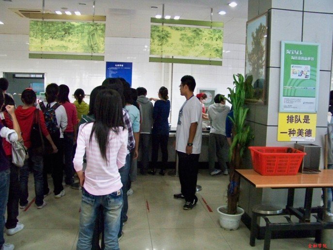 在云顶7610线路检测信用管理学会成立之际,信用管理学会在桃李苑文华餐厅展开了名为“诚信排队,礼让为先”的抽样调查活动。