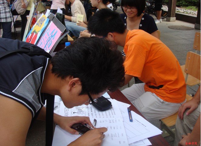 公司金融学会尽管只有两岁的年龄,但目标明确、理念清晰。两年的奋斗,公司金融学会已经做出了自己的特色,成功举办了几大知名度较高的精品活动:“金融风暴”——关注时事热点,在此畅所欲言;ERP沙盘模拟,选拔优秀人才,参加全国比赛;商业实战活动——“财子赢天下”以及现金流(Cash Flow)——感受“财务自由”,提高理财观念。正是这些活动,吸引新生前来驻足,进而仔细询问了解。学会的干事也很投入地为他们一一讲解。更有一些大二的员工,激动地跑过来询问ERP的相关事宜。同时凭借着我社团招新处设在文化长廊第一位的地理优势,加之学会正、副会长亲临现场助阵,招新工作开展得十分顺利,圆满地完成了预期目标。