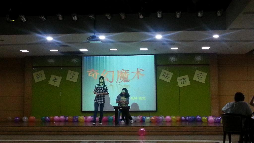在交流会上,同学们充分展示了自己多才多艺的一面。13级新生赵博同学首先以一首搞笑轻松的《换大米进行曲》使现场气氛一下子活跃起来。之后,魔术、冷笑话、唱歌、跳舞、话剧,各式各样的表演形式让在场观众们眼花缭乱。12级员工的节目也十分精彩,李婉春子同学的舞蹈《落花》让人赞叹不已,男女深情对唱的《私奔到月球》也引得同学们的热烈叫好和阵阵掌声。
