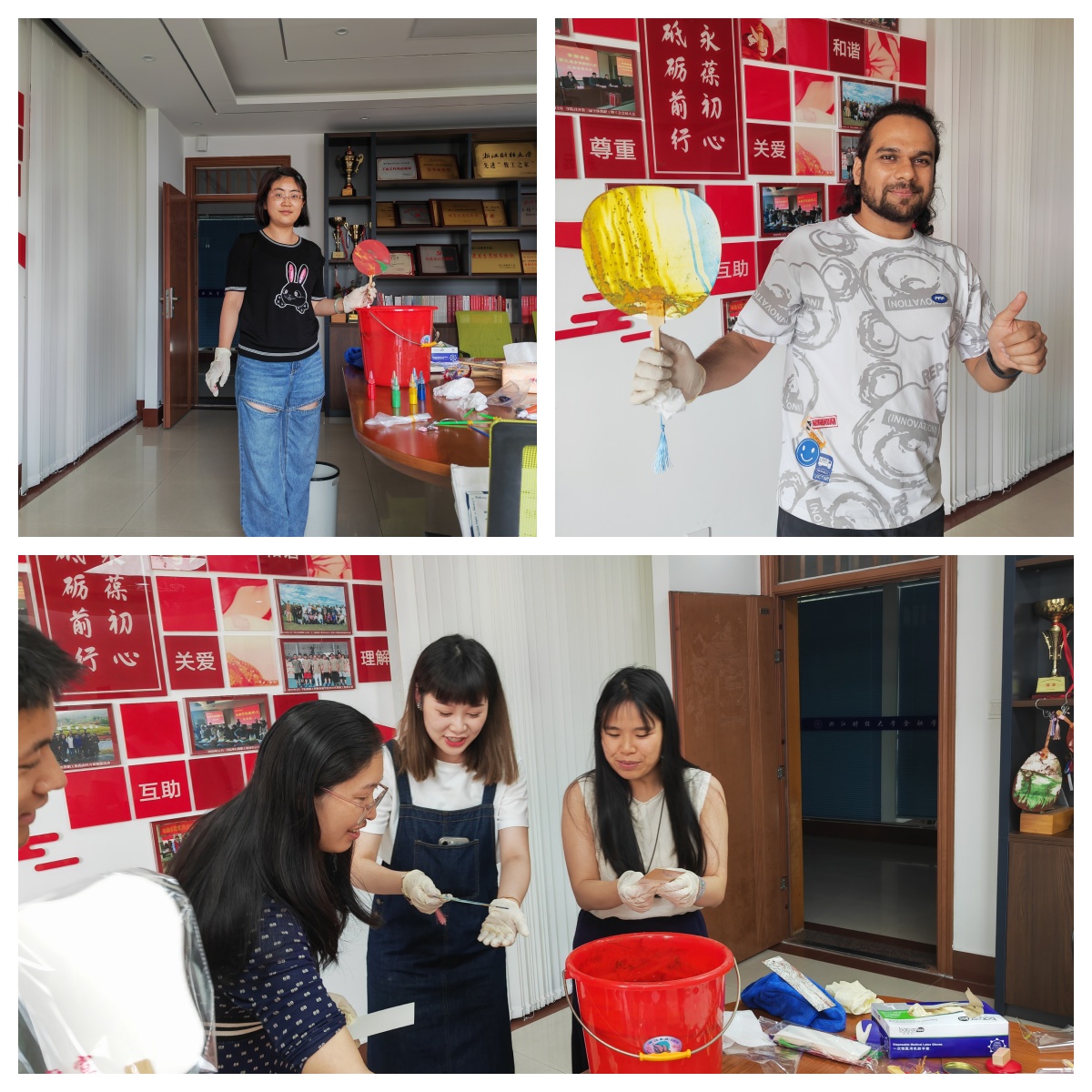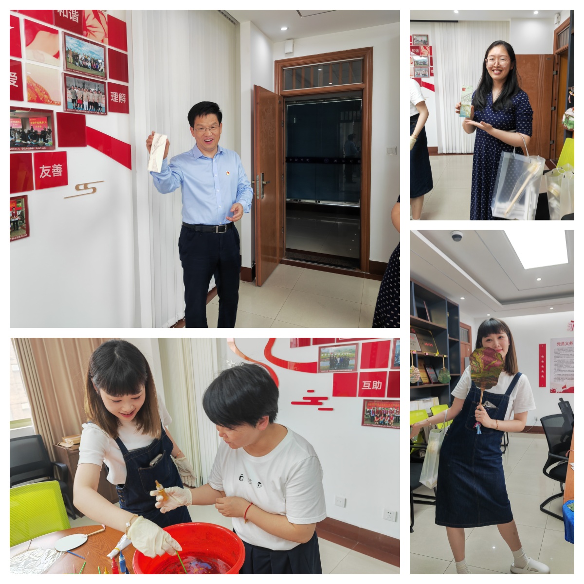 活动中,各位老师积极参与,调配出独属于自身的色彩,将扇子或是书签沉入水中,漆油在上面荡漾出独一无二的形状。本次活动既丰富了公司教职工的工作生活,也传递了传统非遗技艺。