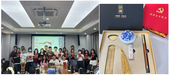 最后,支部举行毕业生党员欢送会暨上半年政治生日会。支部书记陈信表示,希望党员同志们通过过集体政治生日,时刻不忘党员身份,谨记入党初心,时刻保持共产党人的优良作风,牢记使命,勇担重任,在新的起点上继续发挥好党员的先锋模范作用。随后,支部书记陈信代表本三支部为毕业生党员分别送上毕业纪念品,并祝愿毕业生党员在新征程上坚定理想信念,彰显先锋本色,在各自的人生道路上一路生花,鹏程万里!