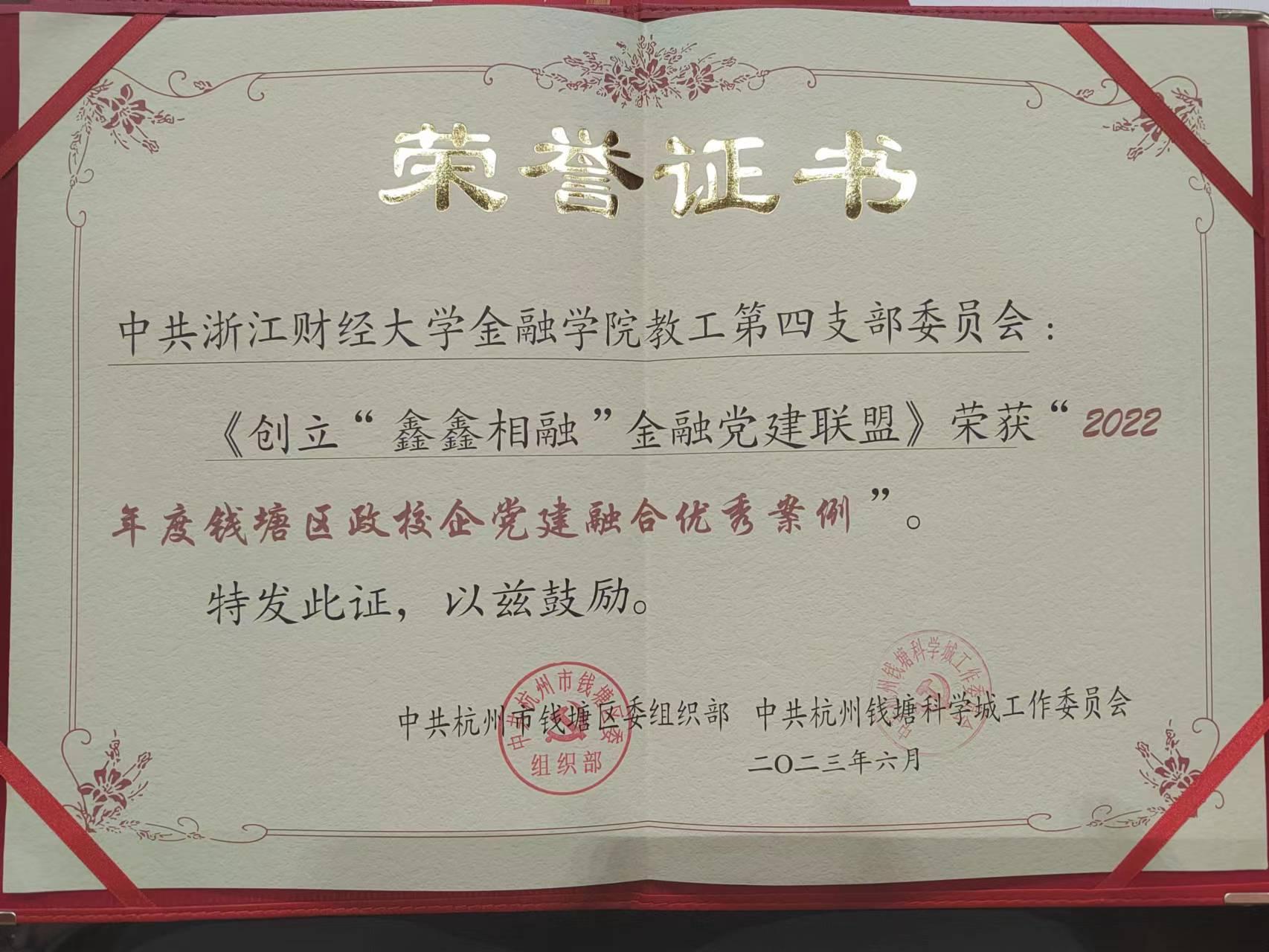 6月29日上午,公司教工第四党支部书记徐峰受邀参加钱塘区“迎亚运 庆七一 促融合 建新功”庆祝中国共产党成立102周年活动,支部的《创立“鑫鑫相融”金融党建联盟》荣获钱塘区政校企党建融合优秀案例。29日下午,在校“循迹溯源学思想 砥砺奋进建新功”“七一”表彰大会上,公司获党建工作表彰5项。其中,党员教师王伟伟、谢敏获第六届全国高校网络教育工作案例二等奖;教工第一党支部获校“先进基层党组织”;教工第四党支部获校“支部建设优秀奖”;教工第一党支部书记金骋路获校“优秀党务工作者”;教工第三党支部书记叶谦工作室获校第四批“双带头人”教师党支部书记示范工作室。这些荣誉的获得既是对公司党建工作的认可,也是公司党委对建党102周年的隆重献礼。