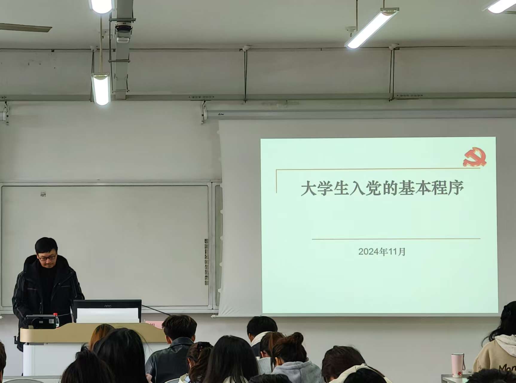 胡恺以《老员工入党的基本程序》为主题,抽丝剥茧讲解共产党员发展的标准细则,复盘真实入党流程案例,分享优秀党员成长心得。通过这堂党课的学习,大家深入学习了党的基本理论和基础知识,提高了同学们自身的思想和政治素质,更深入了解到发展党员工作程序的详细流程,激励同学们时刻以党员标准丈量言行,更努力地向党靠拢。