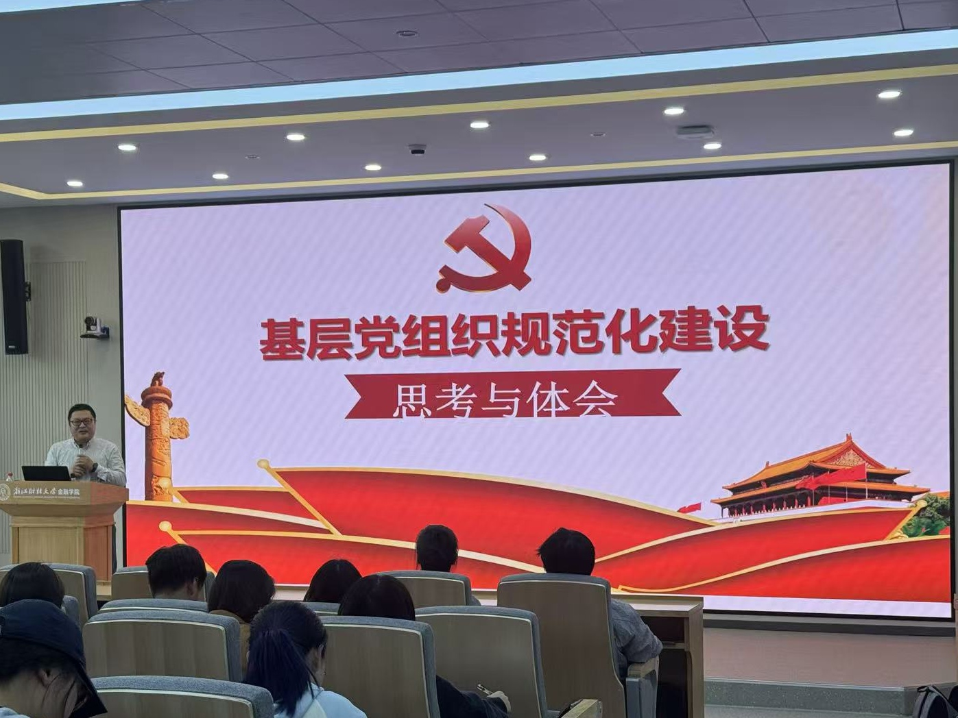 段雪辉以《基层党组织规范化建设思考与体会》为主题,结合《中国共产党普通高等公司基层组织工作条例》,详细解读了高校基层党组织设置原则、主要职责与发展党员工作的规范流程,强调了“三会一课”、组织生活会、民主评议党员等制度的关键作用。段老师还系统阐述了规范化建设的重要意义、现实问题与实践路径。