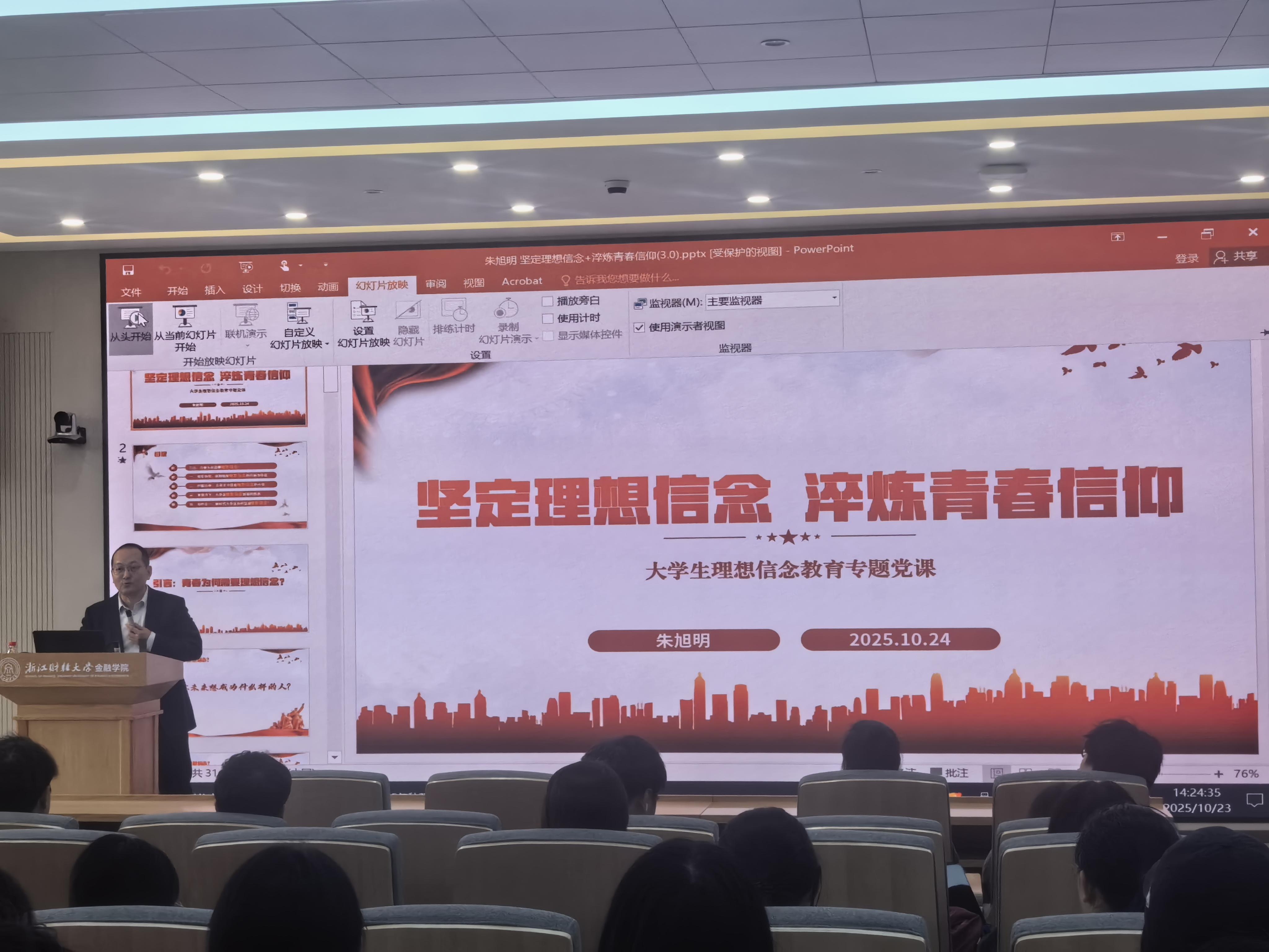 孙国府以《立足财政定位,提升能力水平》为主题,首先结合习近平总书记关于财政工作的重要论述,强调财政工作人员必须坚持党的领导,立足财政在国家治理中的基础和重要支柱作用。随后,他叮嘱同学们要坚守诚信品格,倡导相互包容、周全思考、与人为善,学会换位思考。最后,孙国府提出做好财政工作要具备宏观思维和系统观念,善于统筹资金使用,做到化繁为简。他以小岗村推动中国改革开放的实践为例,鼓励同学们在学习中敏于发现机遇、勇于开拓创新。进一步强化了同学们坚持党的领导的意识,深化了对财政工作的认识,引导大家在今后的学习与生活中自觉践行党的理念,传承红色基因。