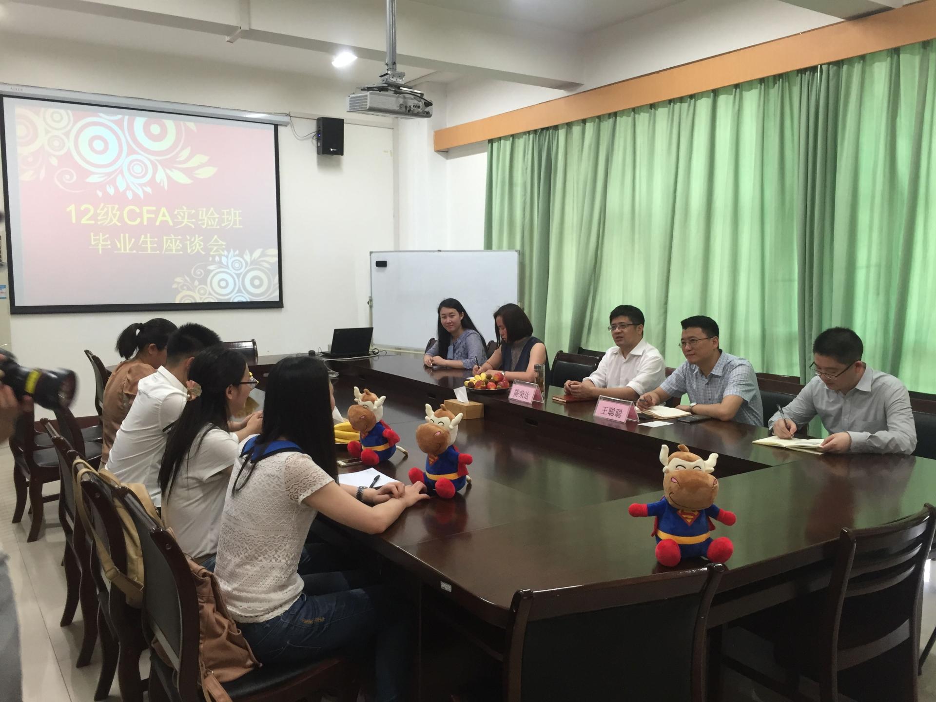 2016年6月13日下午,2012级CFA实验班毕业生座谈会在422会议室举行,云顶7610线路检测经理陈荣达、副经理王聪聪、高顿财经相关负责人出席了本次会议。陈荣达经理发表讲话,他肯定了12级CFA实验班同学们取得的优秀成绩,并赞扬他们为在校同学们做了很好的榜...