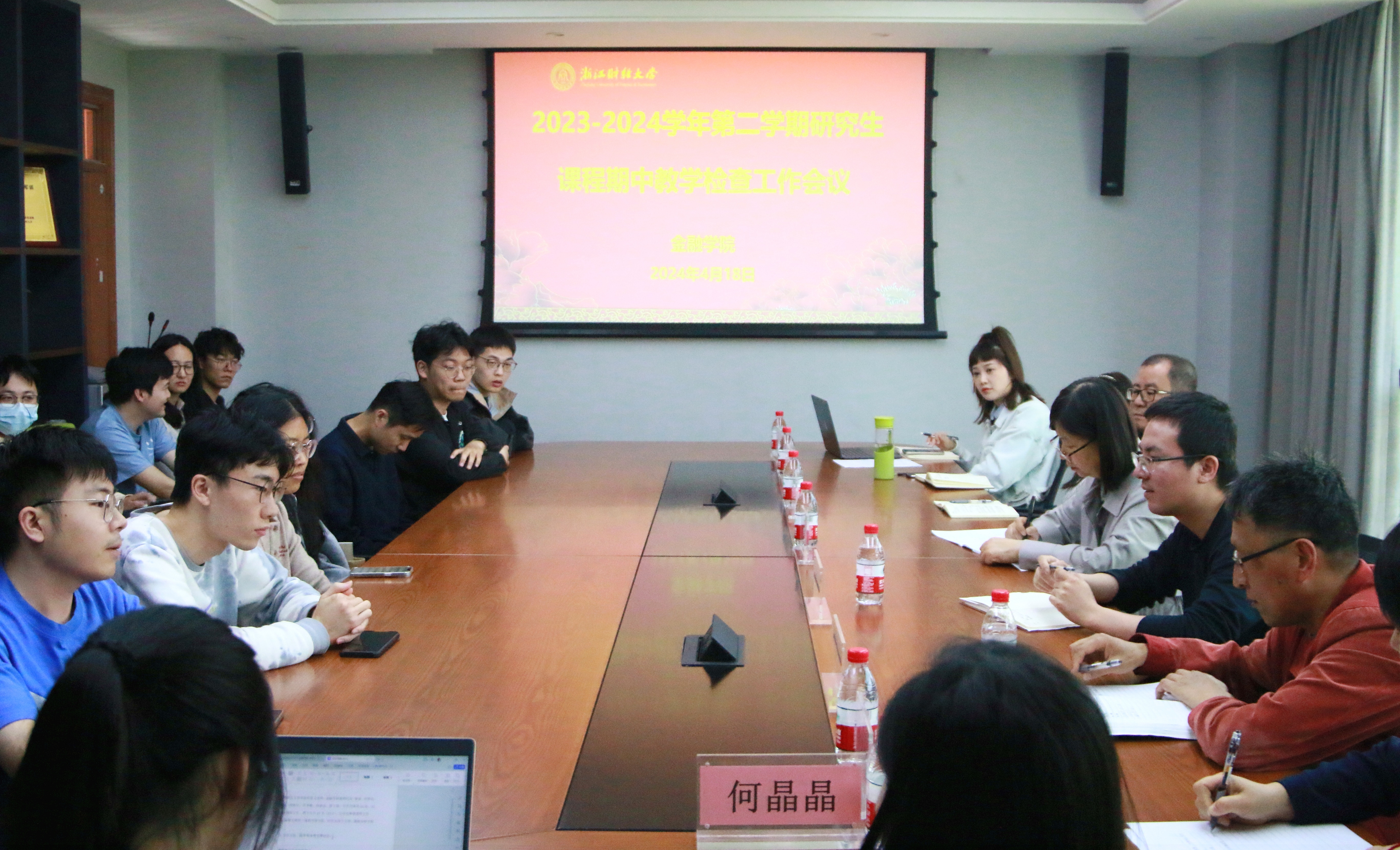 4月18日下午14:00,2023-2024学年第二学期研究生期中教学座谈会在公司楼422会议室召开。本次会议由公司副经理林祺主持,研究生院督导组周慧文、金融专硕负责人朴哲范、保险专硕负责人周海珍、金融工程系主任钟立新、研究生主管井冬梅、研究生辅导...